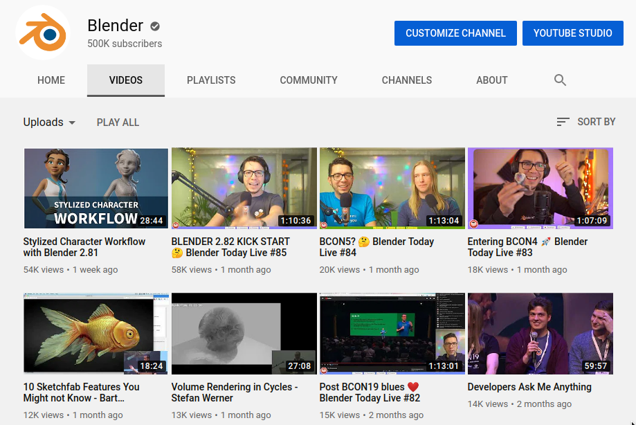 Việc làm vlog Youtube thường xuyên trong suốt Code Quest năm 2018 là một thành công lớn. Mọi người đánh giá cao tính giải trí trực quan, không quá trang trọng này trong khi theo dõi thông báo về tiến trình phát triển Blender. Vào năm 2019, vlogger của Blender.today – Pablo Vazquez (nhân viên của Viện Blender từ năm 2014) đã được yêu cầu chuyển chương trình trực tiếp nổi tiếng của anh ấy từ “Blender Today” sang thành lập kênh youtube của Blender. Bây giờ, việc này đã trở thành một công việc chính của anh ấy. Đây là lý do quan trọng tại sao kênh đã tăng lên nửa triệu người đăng ký ngay trước khi kết thúc năm. Pablo có một kỳ nghỉ, nhưng sẽ trở lại vào năm tới.