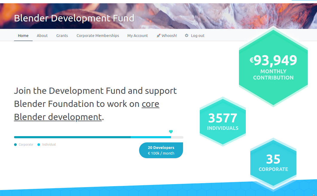 Nếu có một điều định hình năm 2019 cho Blender thì đó là sự hỗ trợ lớn cho Blender thông qua chương trình thành viên cho Quỹ phát triển của chúng tôi. Số lượng thành viên tăng gấp bốn lần trong một năm. Blender hiện có một đội ngũ phát triển cốt lõi lớn hơn nhiều; không chỉ có vậy, nhóm còn lớn đến mức các vai trò khác như nhà quản lý, người viết và kỹ sư lập trình cần phải thêm vào.