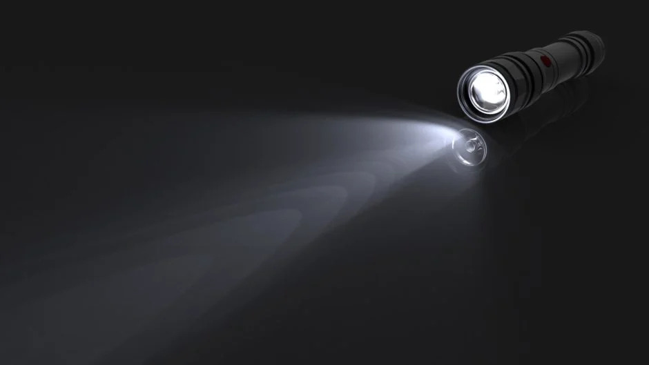 Vật liệu kim loại cũng có thể được sử dụng để đạt được tụ quang; bề mặt nhẵn không có độ nhám cho thấy kết quả tốt hơn nhiều. Ví dụ: đèn pin thường có gương phản xạ chrome nhẵn giúp tập trung chùm ánh sáng – chúng ta có thể tạo lại điều này dễ dàng trong KeyShot.