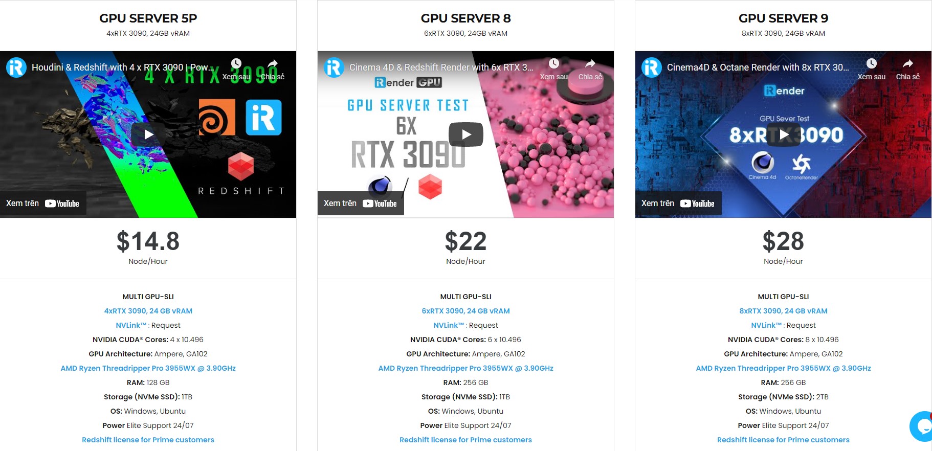 Cấu hình high-end: NVIDIA RTX 3090 và AMD Ryzen Threadripper Pro 3955WX @ 3.90GHz, và giá cả hợp lý. Tuy nhiên, chúng tôi còn hơn thế nữa. Với nhiều tính năng hữu ích (Fixed Rental, Clone, NV Link, APIs, Process monitoring,…) và sự hỗ trợ tận tình từ đội ngũ của chúng tôi, chúng tôi muốn mang đến cho bạn không chỉ những sản phẩm chất lượng tốt nhất mà còn cả thời gian và trải nghiệm kết xuất thoải mái nhất.