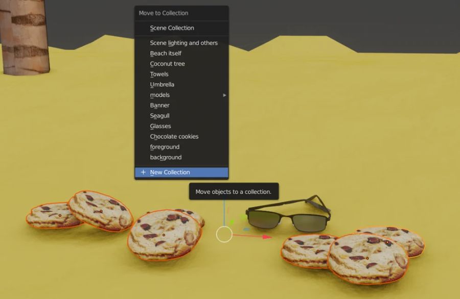 Có những lúc bạn muốn thêm các vật thể đã tạo vào một bộ sưu tập/thư mục. Bạn có thể làm việc đó theo cách sau: