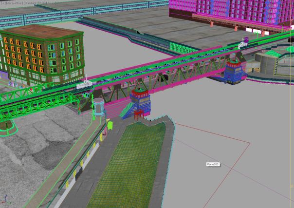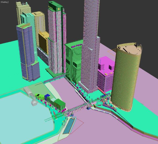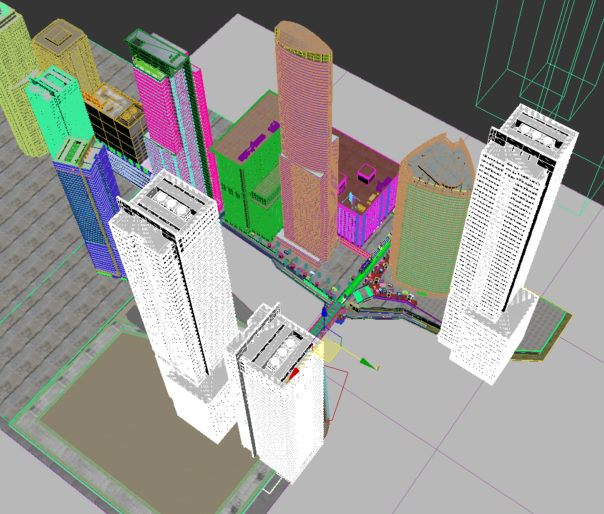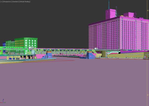 Đối với các tòa nhà cao tầng, tôi đã sử dụng một số mô hình từ Evermotion’s Archmodels vol. 181 để rút ngắn thời gian làm mẫu. Tiếp đó, thêm các chi tiết và kết cấu của riêng tôi cho phù hợp với nhu cầu. Các tòa nhà thấp tầng, tuyến đường giao thông và cầu hầu như không có sẵn các mô hình. Vì vậy tôi đã dành rất nhiều thời gian để mô hình hóa và tự kết cấu chúng. Đó thực sự là một thử thách. Do nó không có tài liệu tham khảo chi tiết. Và tìm kiếm trên Google Maps là cách duy nhất để tìm hiểu mọi ngóc ngách trên đường phố.