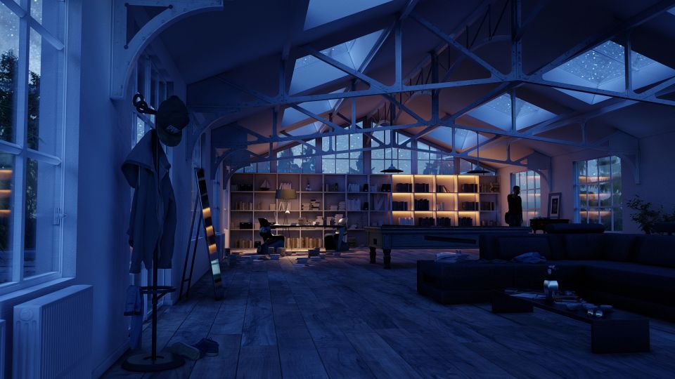 Bạn nhập những mô hình thiết kế nội thất 3D vào phần mềm dựng hình 3D Lumion, thêm bối cảnh và kết cấu vào từng bề mặt của thiết kế, từ các sàn gỗ cho đến thời tiết, cũng như là dầm thép chịu mưa gió, nhiệt độ chạy khắp trần nhà.