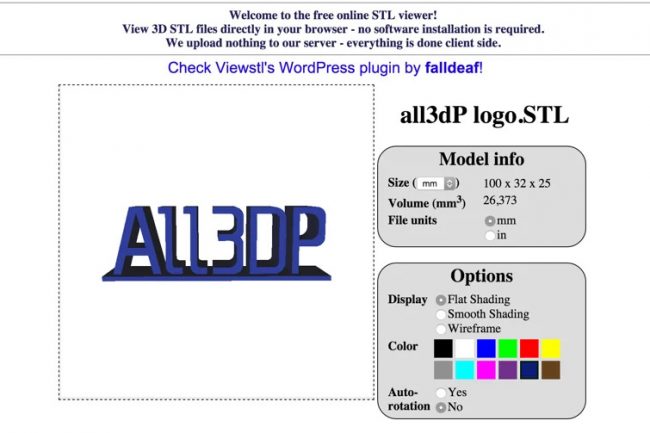 Ngoài ra, bạn có thể tải xuống một plugin có tên “WP ViewSTL” cho phép bạn hiển thị các tệp 3D trên blog hoặc trang web WordPress của mình. Phải thừa nhận rằng ViewSTL không có bất kỳ công cụ đặc biệt nào. Mặt khác, điều này làm cho trình xem tệp STL rất dễ sử dụng, nhưng vẫn rất hữu ích cho bất kỳ ai muốn xem nhanh tệp mô hình 3D.