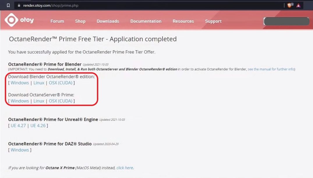 Bước 1) Bạn đăng nhập tài khoản OTOY để tải phiên bản OctaneRender Prime cho Blender và OctaneServer Prime. Nếu bạn chưa có tài khoản, vui lòng đăng ký trước.
