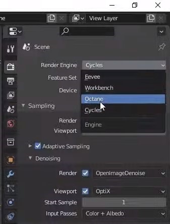 Bước 6) Bây giờ bạn có thể vào Blender’s Render Properties để thiết lập Octane làm công cụ kết xuất của bạn.