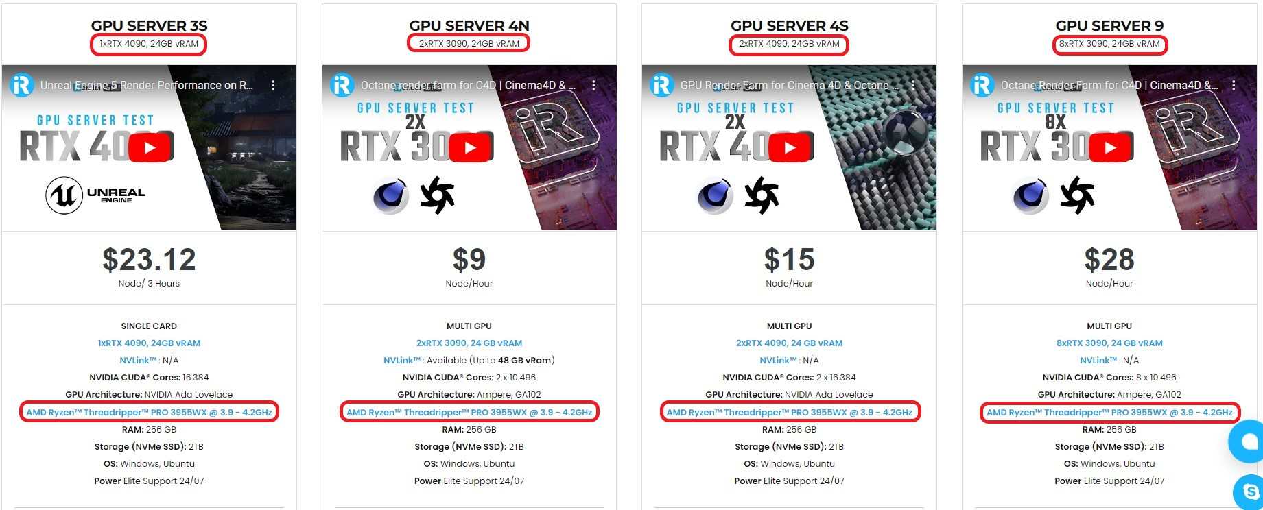 Vơi V-Ray cho Cinema 4D, chúng tôi khuyên dùng các máy chủ từ xa đa RTX4090 hay RTX3090.