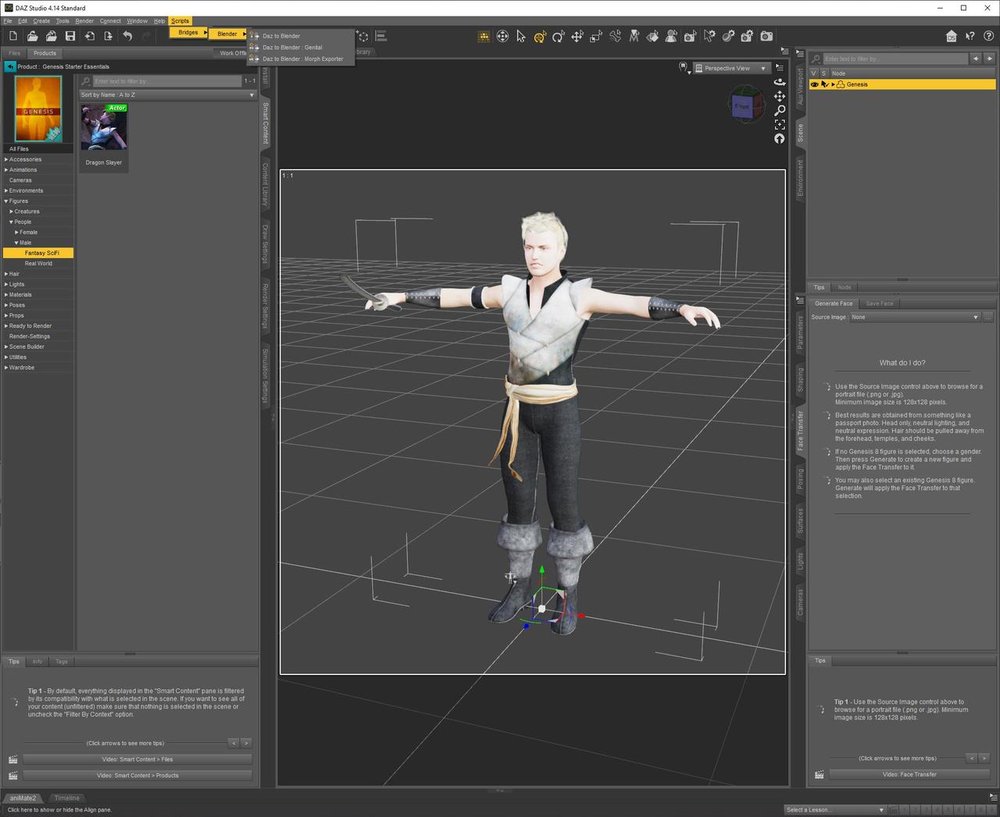Điều rất quan trọng là bạn phải cài đặt Daz Studio bằng liên kết ở trên để đảm bảo rằng bạn có phiên bản cập nhật nhất. Hướng dẫn này sử dụng Daz to Blender Bridge, đây là một tính năng mới có thể không tương thích với các phiên bản cũ hơn. Cuối cùng, nếu bạn chưa nghĩ đến mô hình nhân vật, bạn nên sử dụng mô hình Genesis “Sát thủ rồng” được tích hợp sẵn để làm theo các bước bên dưới.