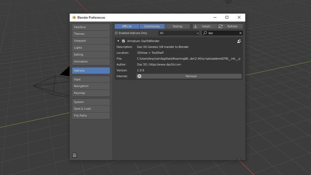 - Trong Add-ons menu, hãy tìm “Armature: DazToBlender”.