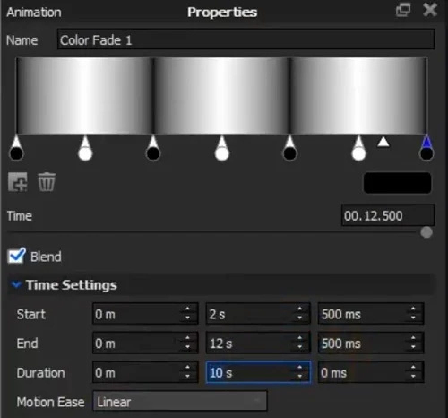 Một mẹo hữu ích cho chúng ta, đó là bằng cách thêm nhiều stops vào thanh gradient và xen kẽ các giá trị đen trắng, chúng ta sẽ tạo hiệu ứng nhấp nháy. Nhấp vào biểu tượng Add Stop để thêm một số điểm dừng và thay thế màu sắc của chúng cho phù hợp. Bạn có thể tạo Color Swatch để tăng tốc độ này lên một chút. Đối với việc chuyển đổi giữa trạng thái tắt và bật, hãy đảm bảo khoảng trống các điểm dừng đều nhau hoặc khi cần cho ứng dụng của bạn. Dưới đây là các cài đặt Color Fade cuối cùng cho đèn LED bàn chải đánh răng để nó từ từ chuyển chế độ tắt sang bật, tắt, ba lần mỗi lần hai giây.