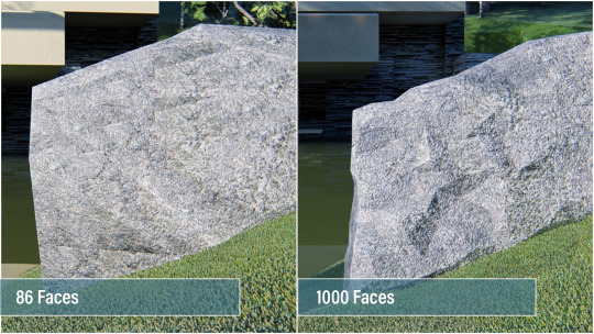 Thông thường, các đối tượng 3D có số lượng đa giác cao hơn sẽ trông đẹp hơn (đùn, cạnh vát, uốn lượn, v.v.), nhưng các mô hình chi tiết cao này sẽ yêu cầu hiệu suất cao hơn từ máy tính của bạn. Hơn nữa, việc xây dựng đối tượng 3D không hiệu quả có thể dẫn đến số lượng đa giác khổng lồ để cải thiện một chút chi tiết. Ví dụ: một cây có thể bao gồm 2.000 đa giác trong khi một cây khác trông tương tự có thể chứa hơn 20.000 đa giác (nếu nó được xây dựng không hiệu quả). Nếu những cây này chỉ là vật phẩm nền, thì bạn có thể đang tạo ra một cảnh rất nặng nề không cần thiết trong Lumion.