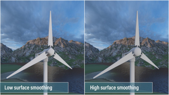 Thanh trượt “Làm mịn bề mặt” xác định độ phức tạp của mô hình của bạn cũng như giao diện của các bề mặt cong. Ví dụ, làm mịn bề mặt thấp, dẫn đến một mô hình nhẹ hơn, ít phức tạp hơn; làm mịn bề mặt cao dẫn đến một mô hình nặng hơn, phức tạp hơn. Bạn có thể xem kết quả trong hình ảnh bên dưới: