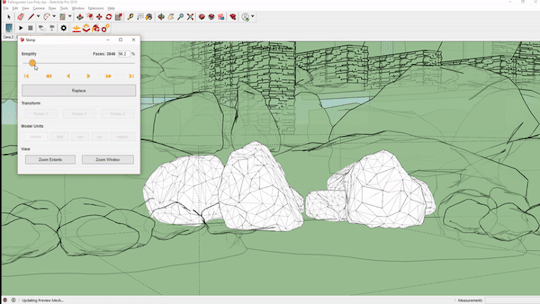 Khi nhập các mô hình rất lớn (hơn 20 MB) từ phần mềm CAD 3D bên ngoài, SketchUp khuyên bạn nên chạy mô hình thông qua trình giảm thiểu nhiễu. Trong SketchUp, có các loại plugin và phần mềm của bên thứ ba khác nhau để giảm số lượng đa giác của mô hình. Một tiện ích mở rộng đi kèm với một loạt các công cụ tạo mô hình hữu cơ hữu ích, bao gồm cả bộ giảm đa giác, là tiện ích mở rộng Artisan dành cho SketchUp.