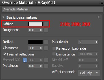2.2. Trong trường hợp này, chúng ta có thể làm cho vật liệu ghi đè sáng hơn. Đi tới Trình Material Editor và đặt VRayMtl mặc định vào một trong các vị trí (nó hiển thị là được sử dụng trong “Environment” trong trình duyệt Material / Maps). Làm cho màu khuếch tán của vật liệu là RGB (200, 200, 200).