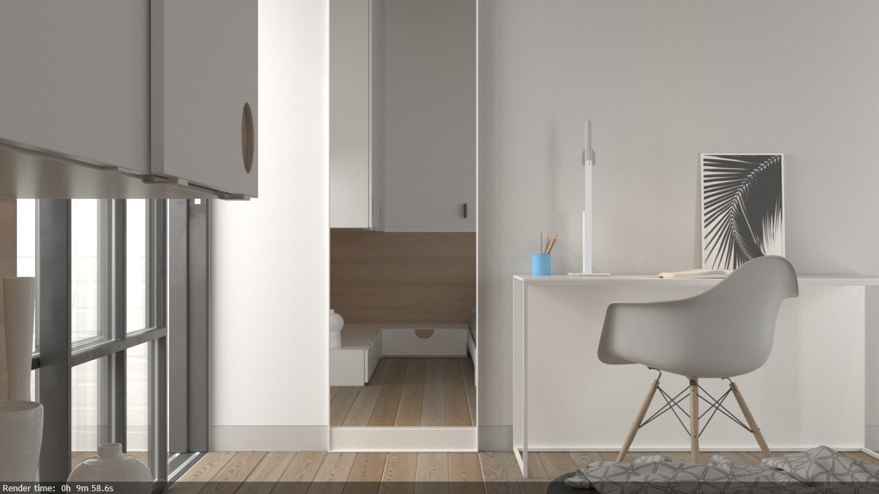 Nhiễu hạt không còn hiển thị nữa, nhưng thời gian kết xuất cũng tăng lên. Cài đặt V-Ray Next mặc định là một lựa chọn tốt cho kết xuất cuối cùng.