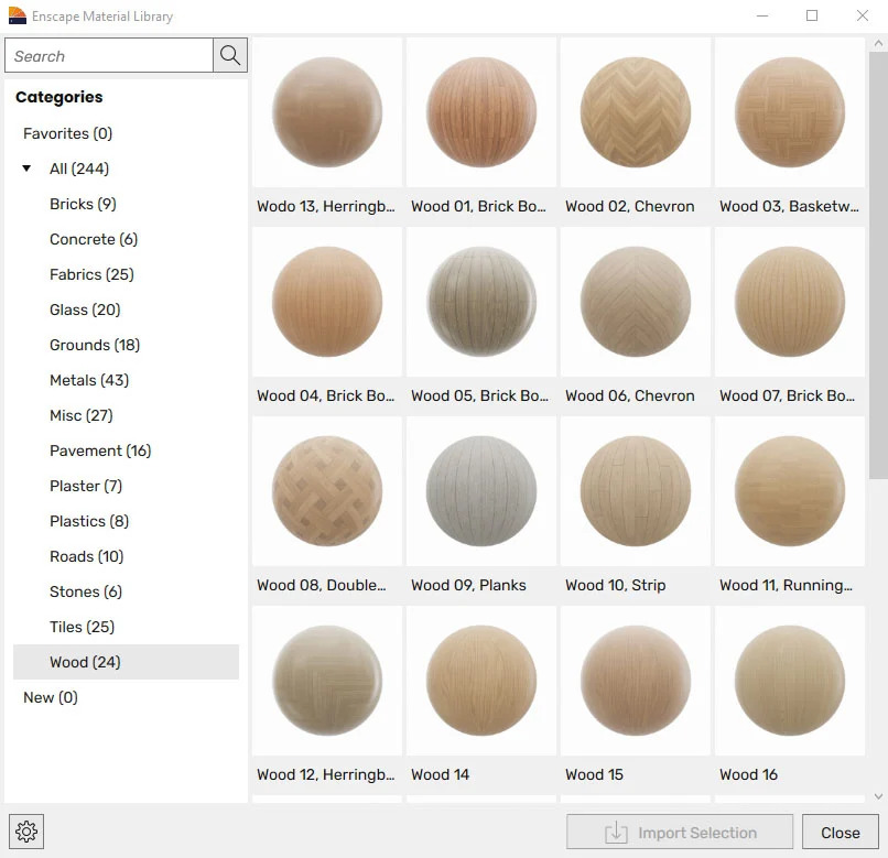 Một cách đơn giản để nâng cao tính hiện thực cho các dự án của bạn là sử dụng các vật liệu phù hợp. Với Thư viện vật liệu mới của Enscape, bạn có thể chọn từ các vật liệu chất lượng cao được xác định trước sẵn sàng sử dụng trong các dự án của mình. Hơn 200 materials đã được tạo để giúp bạn bắt đầu và các vật liệu bổ sung sẽ được thêm vào thư viện với các bản phát hành trong tương lai. Các vật liệu như gỗ, vải, gạch và ngói có thể được tìm thấy trong Material Library mới. Các tài liệu này cũng có thể được nhập vào Trình chỉnh sửa tài liệu Material Editor, nơi bạn có thể chỉnh sửa các phần tử khác nhau để có được giao diện mà bạn cần. Tính năng mới này sẽ giúp bạn tiết kiệm thời gian tìm kiếm và tạo các vật liệu kết xuất cao cấp và giúp bạn dễ dàng cải thiện chất lượng kết xuất của mình mà không tốn nhiều công sức.