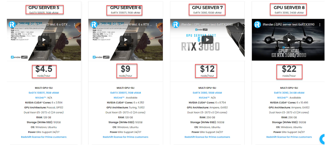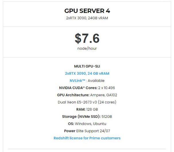 Như chúng ta có thể biết 2 GPU là một lựa chọn phổ biến cho người dùng Octane Studio nói riêng và các nghệ sĩ 3D nói chung với các dự án quy mô trung bình. Tuy nhiên, không có nhiều trang trại render cung cấp cho bạn cấu hình GPU KÉP như vậy. Tại iRender, chúng tôi hiểu nhu cầu của các nghệ sĩ công nghệ và cho ra mắt máy chủ DUAL RTX 3090 thậm chí còn rẻ hơn cả 6 x RTX 2080 . Tuy nhiên, chúng tôi đảm bảo rằng hiệu suất bạn nhận được sẽ mạnh hơn nhiều so với 6 card x RTX 1080, 2080, 2080Ti.