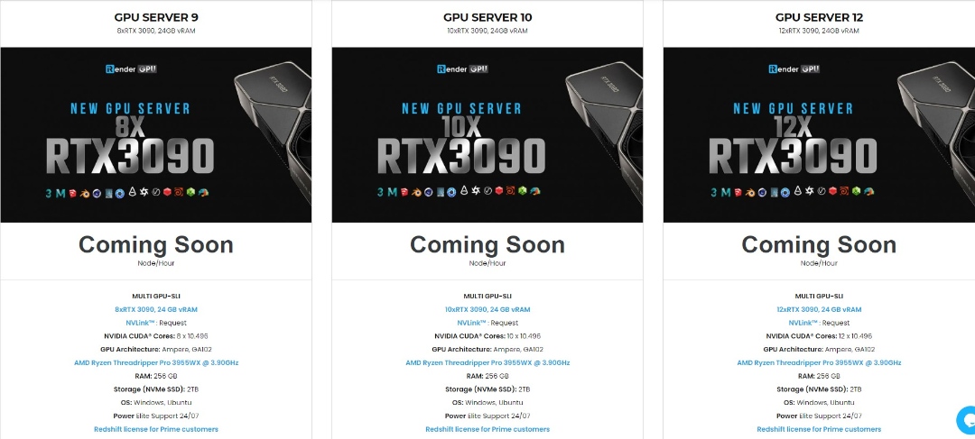 - 1/2/4/6x RTX 3090/3080/2080Ti. Đặc biệt, NVIDIA RTX 3090 – card đồ họa mạnh mẽ nhất hiện nay.