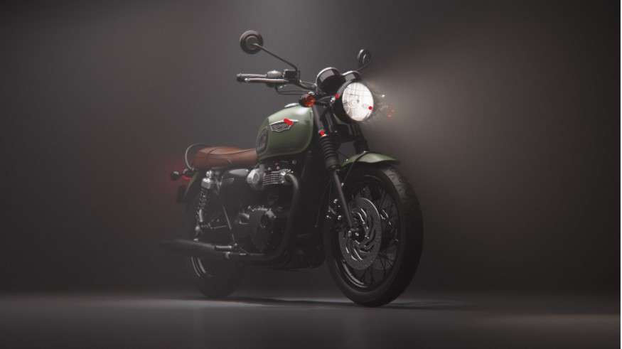 Trong cách này,  khái niệm tương tự về spotlighting through scattering medium cũng được sử dụng để tạo sự chú ý cho đèn pha và đèn hậu của xe máy, đồng thời cung cấp thêm thông tin của context môi trường của cảnh. Nó không chỉ tạo ra một bố cục ấn tượng, mà còn gợi lên cảm giác rằng chúng ta hiện đang xem chiếc xe trong một môi trường tối tăm, mờ mịt, có thể là ở trên đường phố, hoặc đang đậu trong một con hẻm tối tăm nào đó, được chiếu sáng bởi một ngọn đèn gần đó.