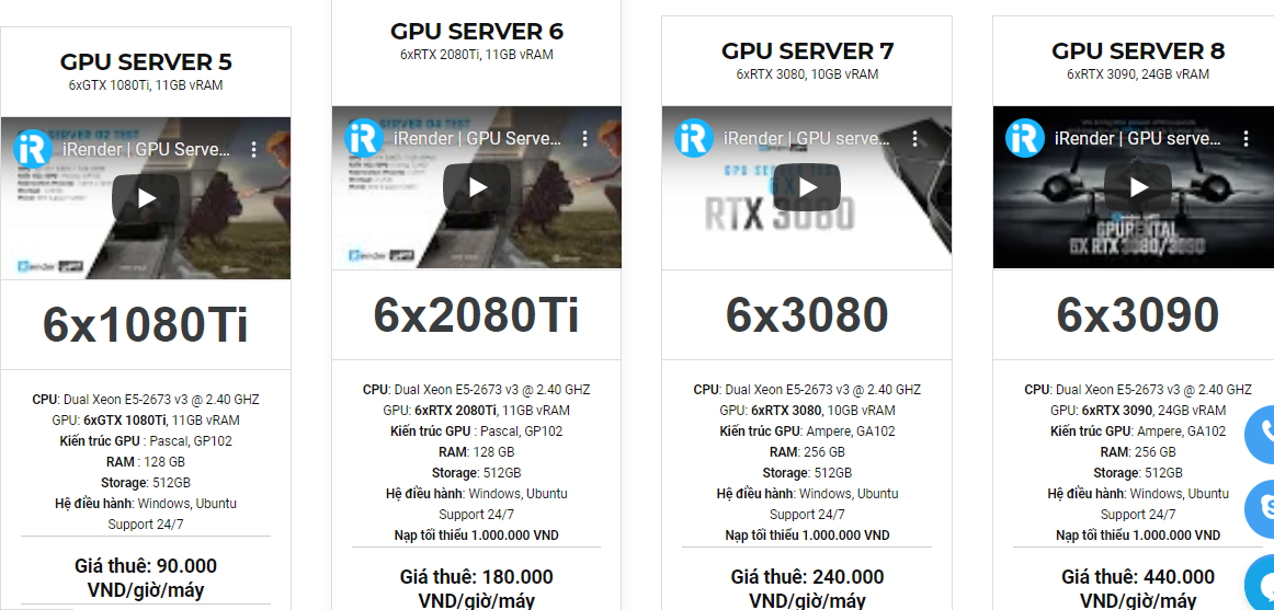 Với kết xuất GPU, chúng tôi có các tùy chọn cho gói GPU máy chủ nhiều thẻ với chi tiết bên dưới: