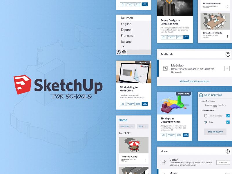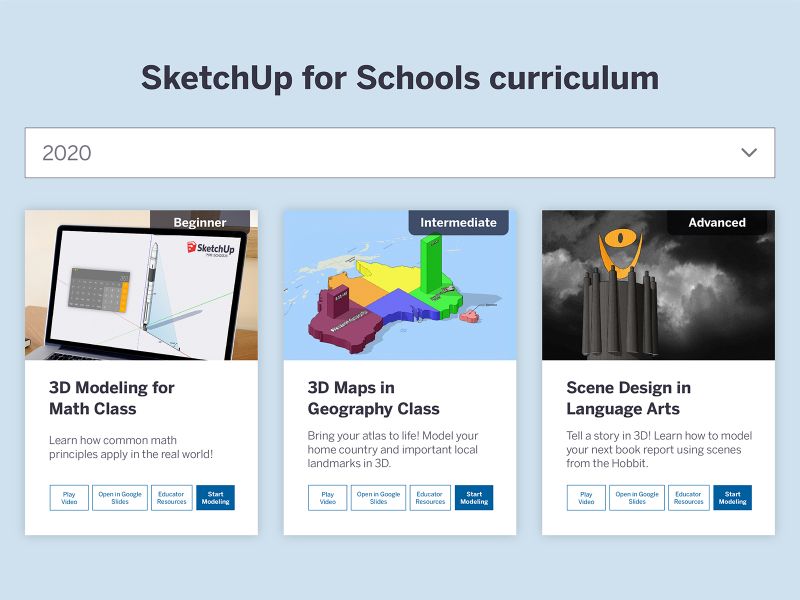 Năm ngoái, trọng tâm chính của chúng tôi là mở rộng từ G Suite for Education sang Microsoft Education. Năm nay, chúng tôi đang tập trung vào cách thức hỗ trợ các nhu cầu học tập khác nhau của lớp học của bạn. Với các kế hoạch bài học lấy cảm hứng từ chương trình học, tài nguyên dành cho nhà giáo dục và tìm kiếm bản địa hóa, bạn có thể cá nhân hóa trải nghiệm học tập SketchUp của riêng mình. Bất kể bạn ở đâu hay bạn dạy gì, hãy để SketchUp giúp đỡ lớp học của bạn.