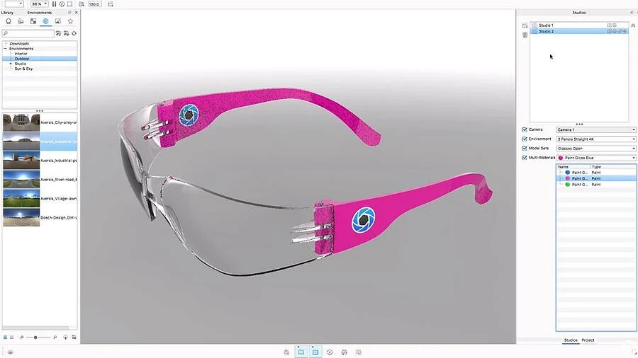 Vì vậy, Studios kết hợp những gì tốt nhất của Viewsets (Camera và Environment) và cho phép bạn bao gồm Model Sets và các biến thể Material. Bạn có thể tìm hiểu thêm về Chuyển đổi Viewset thành Studio trong Hướng dẫn sử dụng KeyShot 7