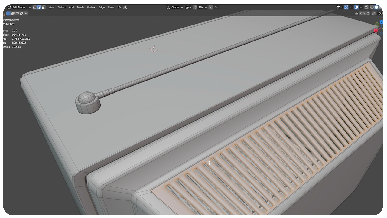 Hãy coi phần lỗ thông hơi phía sau của TV như một ví dụ minh họa cho việc tách lưới để tối ưu hóa. Thay vì kết hợp lỗ thông hơi có hình dạng cao với thân TV, nó đã được thiết kế như một lưới độc lập. Phương pháp này không chỉ đơn giản hơn mà còn phản ánh hoạt động sản xuất thực tế, trong đó TV bao gồm các tấm nền và vật liệu khác nhau. Mặc dù đối tượng này có thể vẫn là một vật thể duy nhất trong không gian UV, nhưng tất cả các đỉnh vertex không cần thiết phải được kết nối với nhau.