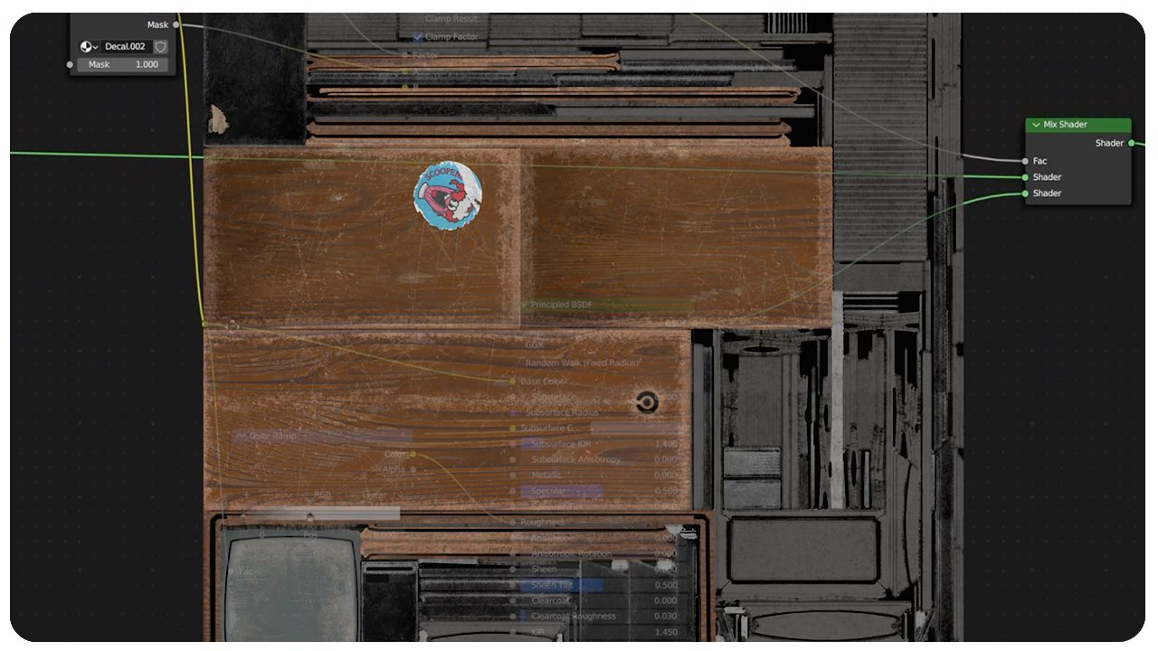 Trong khi các texture khác nhau mang lại chiều sâu, để nâng cao hiệu suất của động cơ, những vật liệu này được đơn giản hóa thành một map đã được baking xong. Điều này rất quan trọng vì procedural textures mạnh nhưng lại cồng kềnh khi render real-time và không thể xuất trực tiếp sang công cụ game. Vì vậy, baking giúp tập hợp những vật liệu đa dạng này thành một vật liệu (đã được baking) hợp nhất.