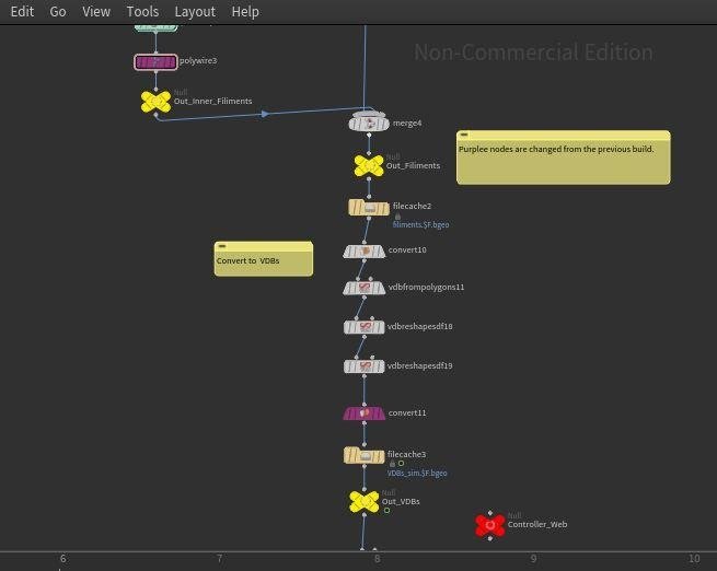 Bạn nên tạo các tệp có cấu trúc. Giả sử bạn đang tạo hiệu ứng dựa trên nước: colliders và geometry sources phải ở trên cùng của thiết lập, và mô phỏng nước và bọt trắng ở phía dưới hơn. Nếu bạn đang làm việc với thứ gì đó phức tạp hơn, chẳng hạn như đám đông, hãy nhóm tất cả các nodes liên quan đến một đối tượng cụ thể. Tô màu các nodes quan trọng cũng có thể thu hút sự chú ý đến các DOP networks quan trọng, các chuyển đổi và Object Nodes.