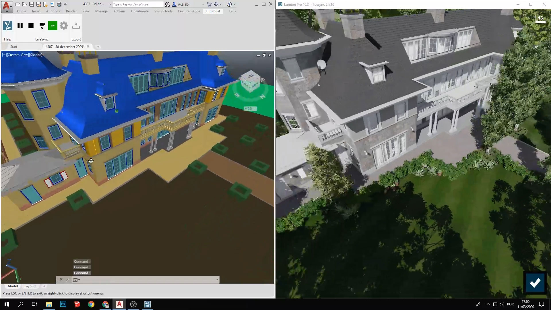 1. Thay đổi mô hình 3D trong AutoCAD và xem ngay các thay đổi trong Lumion
