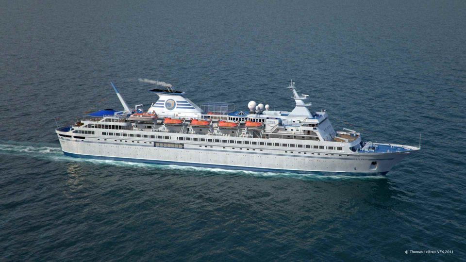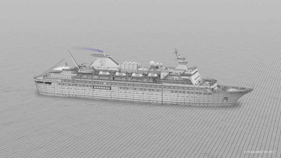 Hình ảnh dưới đây của Thomas Leitner được phát triển cho bộ phim truyền hình Áo, “Die lange Welle hinterm Kiel” (The long wave behind the keel) dựa trên một cuốn tiểu thuyết của Pavel Kohout. “Chúng tôi đã thực hiện 11 cảnh quay với con tàu”, Leitner cho biết. “Mọi thứ đều được kết xuất bởi LightWave: con tàu, đại dương và những làn khói”. Nó được render ở chế độ full HD với GI (Monte Carlo) được lưu trong bộ đệm. 17 phút cho mỗi khung hình.