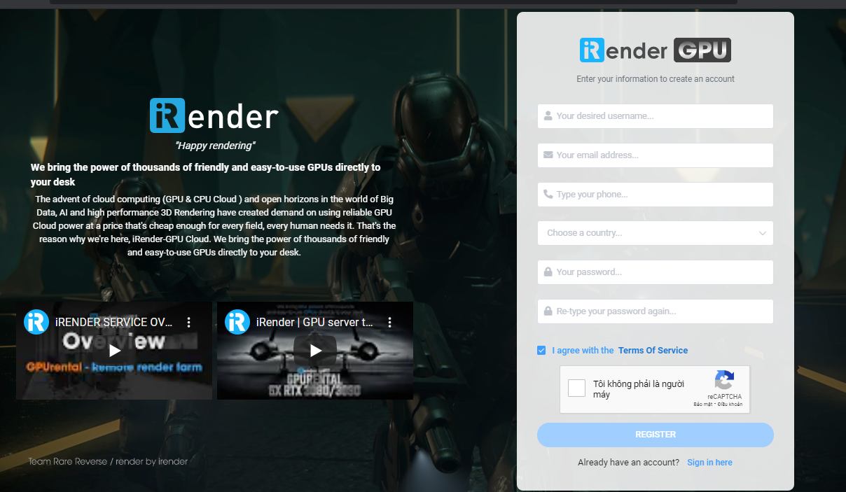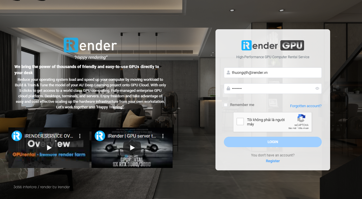 Bước 1: Đăng ký tài khoản (dành cho các cá nhân chưa có tài khoản để sử dụng dịch vụ tại iRender.vn)