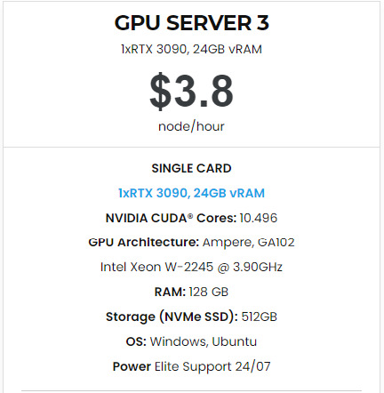 Bên cạnh đó, chi phí được tính theo thời gian thực tế bạn sử dụng máy: từ khi bạn kết nối máy chủ của chúng tôi đến khi máy tính tắt. Nhưng bạn luôn có thể tiết kiệm đến 20% với tính năng Fixed Rental của chúng tôi. Đối với những ai đang có nhu cầu sử dụng server nhiều hơn 1 ngày, hoặc có những dự án lớn, chúng tôi tư vấn chọn gói thuê theo ngày / tuần / tháng. Mức chiết khấu hấp dẫn (10% cho gói thuê ngày và 20% cho thuê tuần và tháng). Ưu đãi đặc biệt trong tháng 1 này: Đối với những khách hàng đăng ký lần đầu tiên và nạp tiền trong vòng 24h sẽ được nhận 20% bonus.