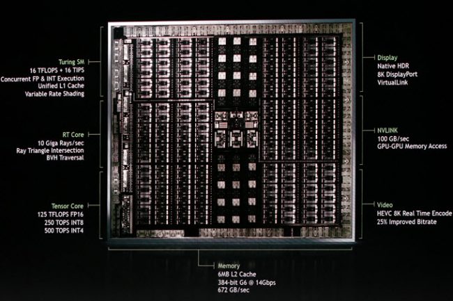 Turing là sự kế thừa của kiến trúc GPU Volta. Đây là một trong những kiến trúc GPU tiên tiến nhất từng được tạo ra. GPU Turing được xây dựng trên quy trình sản xuất FinFET 12nm và hỗ trợ bộ nhớ GDDR6, hoạt động ở tốc độ rất cao, có thể đạt được băng thông cao hơn nhiều so với các bộ nhớ GDDR5X và GDDR5 trước đây. Kiến trúc GPU tiên tiến này đi kèm với các Core CUDA, Tensor và RT. Turing là kiến trúc GPU đầu tiên hỗ trợ Real Time Ray Tracing (Ray tracing thời gian thực) để tạo ra ánh sáng giống như thật, bóng tối, phản xạ, khúc xạ và các hiệu ứng ánh sáng tiên tiến khác. Ray tracing thời gian thực này được xử lý bởi Core RT và hiệu suất của nó được đánh giá trong một hệ đo lường mới gọi là Giga Rays trên mỗi giây.