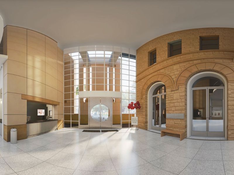 Khi bên ngoài và bên trong đã hoàn thành, anh ấy đã thêm tất cả các chi tiết bao gồm cổng vòm, tay vịn, kết cấu và vật liệu. Để kết hợp các kết cấu và vật liệu, anh ấy đã sử dụng V-Ray để hiển thị các ảnh toàn cảnh hình cầu 360 độ cho từng phòng theo trình tự, dẫn du khách từ bên ngoài qua sảnh chính và vào các phòng trưng bày nghệ thuật. Điều này đã làm tăng thời gian giao hàng của anh ấy và tất nhiên, làm cho nó trông giống như thật hơn, đó là một phần thưởng bổ sung.