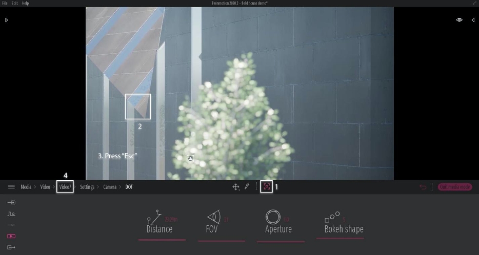 Sử dụng focus widget để chọn tiêu điểm. Chúng ta sẽ bắt đầu với cây phía trước. Ấn ‘esc’ khi hoàn tất: