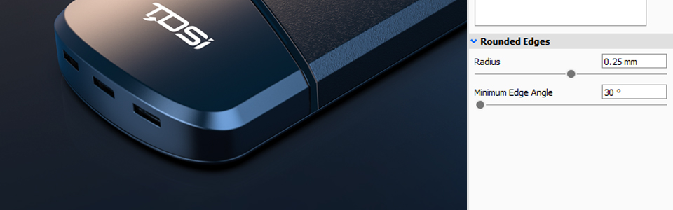 KeyShot cho phép bạn thêm radius vào mô hình của mình, làm tròn các cạnh sắc nét một cách hiệu quả và làm mịn các chuyển tiếp. Tips này thường áp dụng cho các bộ phận bằng nhựa đúc, trong thực tế, rất hiếm khi bạn có thể nhìn thấy hoặc có thể tạo ra một cạnh thực sự sắc nét. Tính năng này đặc biệt hữu ích khi tạo các điểm nổi bật trên các cạnh mô hình.