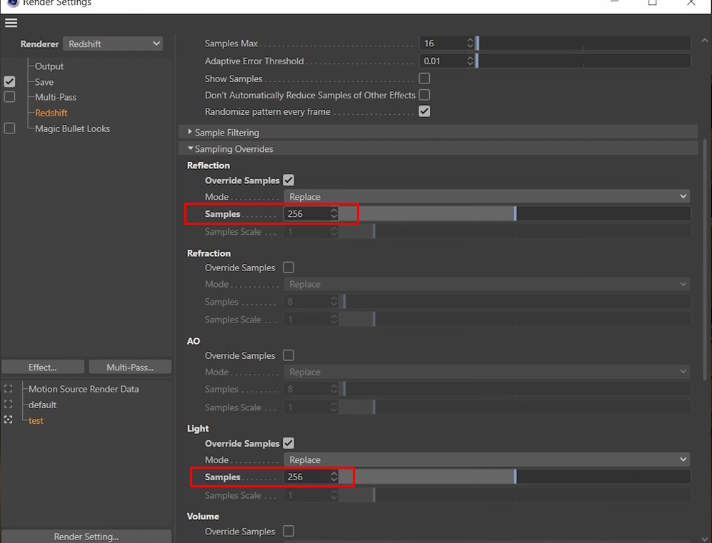 Nếu cảnh của bạn chứa nhiều vật liệu phản chiếu, hãy cân nhắc tăng số lượng mẫu lên 512. Chúng ta sẽ đặt giá trị thành 128 với các mẫu ánh sáng. Với reflection, chúng ta sẽ cần tăng số lượng mẫu lên 256.