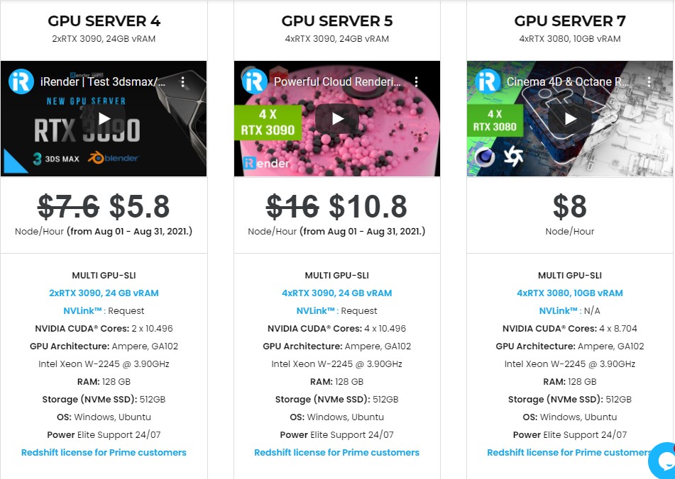 iRender là công ty tiên phong tại Việt Nam cung cấp hiệu suất điện toán cao trên mô hình IaaS (Cơ sở hạ tầng như một dịch vụ) với hàng nghìn CPU và GPU cho kết xuất 3D, xử lý Big Data hay bất cứ công việc nặng nào. Chúng tôi cung cấp gói CPU và 6 gói GPU với 1/2/4/6 card RTX 2080Ti/3080/3090 – phù hợp cho mọi nhu cầu của bạn và tăng tốc thời gian render lên nhiều lần.